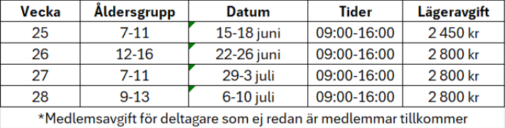 2026 har vi fyra lägerveckor med start vecka 25. (OBS, vecka 25 är endast 4 dagar)